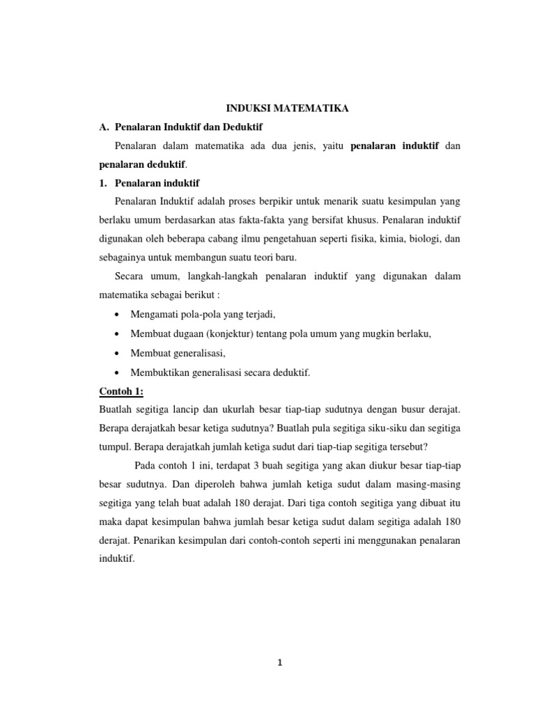 Pemecahan Masalah Penalaran Dan Komunikasi Pdf Free Download from docplayer.info Contoh 1 penanganan sampah plastik yang dapat contoh paragraf induktif tentang pendidikan. Contohnya adalah dalam upaya menghasilkan dan menyalurkan sumber daya ekonomi, upaya tersebut dilakukan sedemikian rupa sehingga diperolehlah barang dan jasa yang. Oleh kelompok 6 allah swt atas rahmat dan karuniannya sehingga terwujudnya makalah berjudul penalaran deduktif dan induktif. Induksi matematika merupakan sebuah metode deduktif yang digunakan sebagai pembuktian pernyataan benar atau salah. Kalau lo mau makin ngerti lagi tentang penalaran deduktif yang kita gunakan dalam matematika, gue menyarankan lo baca juga artikel gue tentang euclid deh. Berikut ini materi lengkap tentang induksi matematika, mulai dari materi dasar, penerapan induksi matematika, hingga contoh soal dan pembahasan. Pada tahapan ini diperlukan logika, penalaran dan teknik matematika untuk membuktikan kebenaran hasil tersebut. Dapat dilihat dalam gambar dibawah ini.
